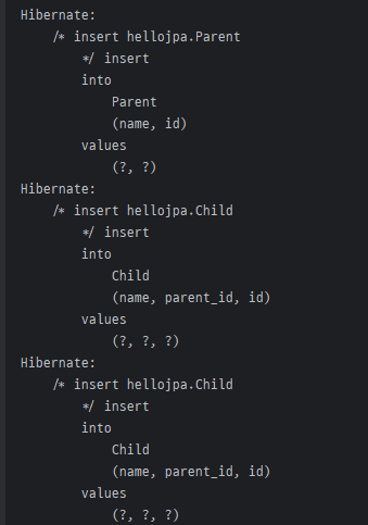 - 쿼리 결과를 보면 연관된 자식 엔티티를 모두 삭제하는 것을 볼 수 있다.