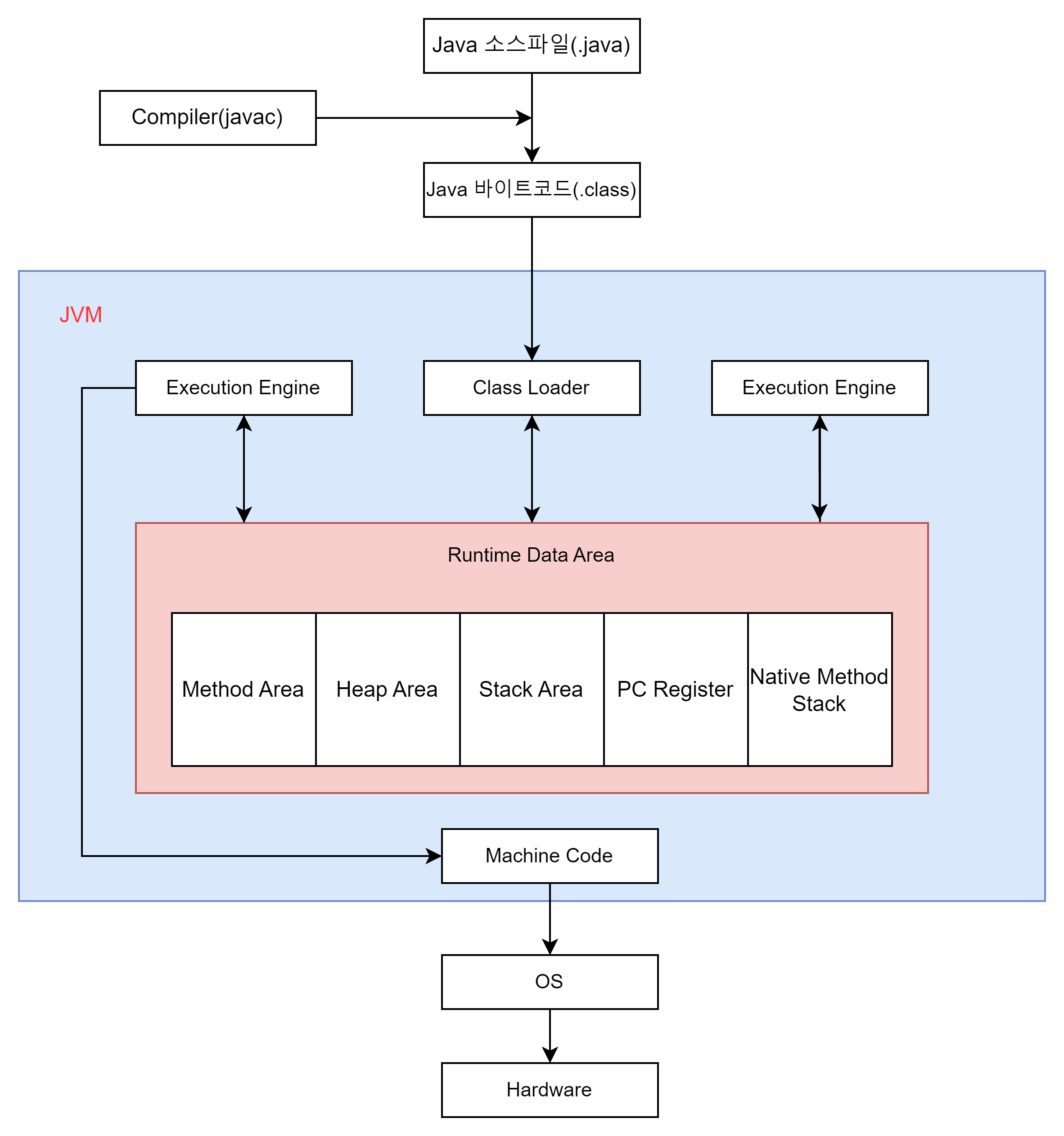 실행엔진은 수행 과정에서 인터프리터, JIT 컴파일 두 가지 방식으로 바이트 코드를 실행한다.