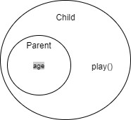 - Child는 Parent를 상속받기 때문에 Parent의 모든 멤버(age)를 상속 받는다.