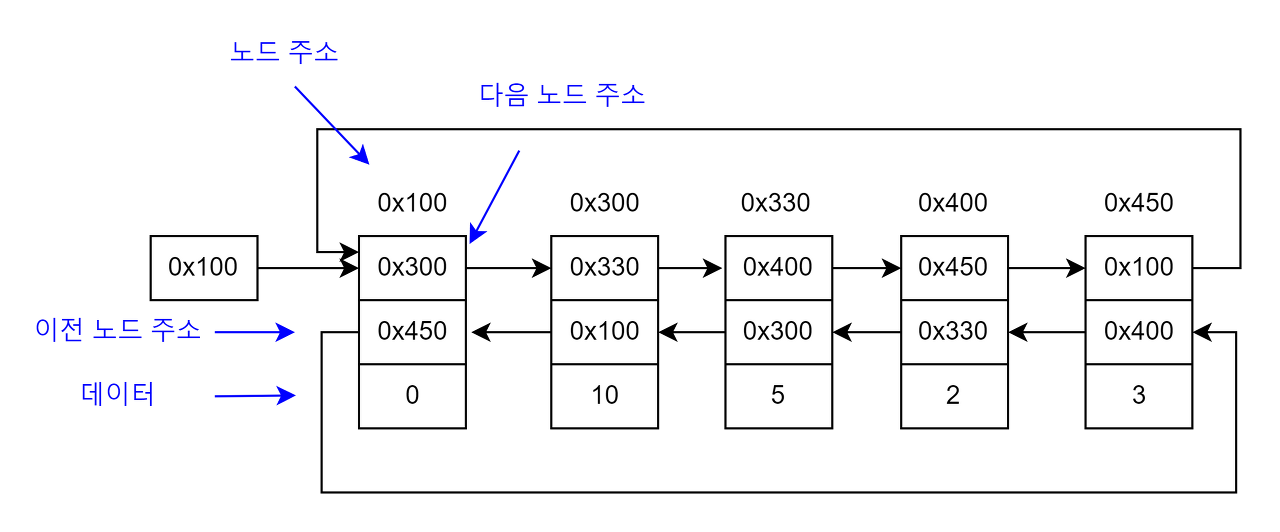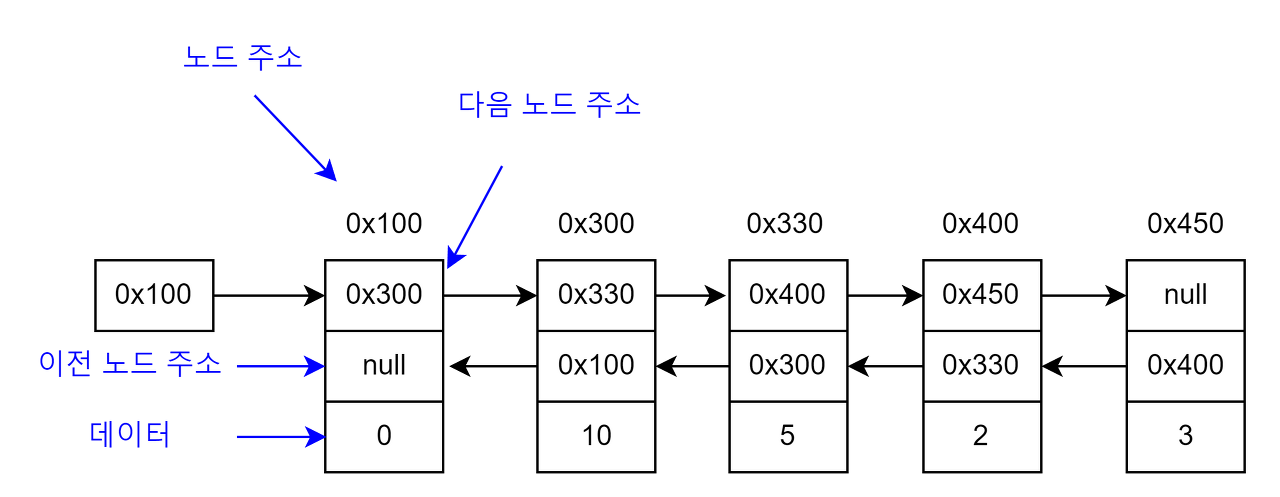 - 단방향 LinkedList에서 이전 노드의 주소를 담고있는 필드가 추가
