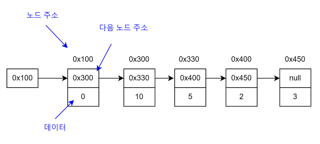 - 노드(객체)끼리의 주소(포인터)를 서로 가리키며 링크(참조)로 이어지는 구조.