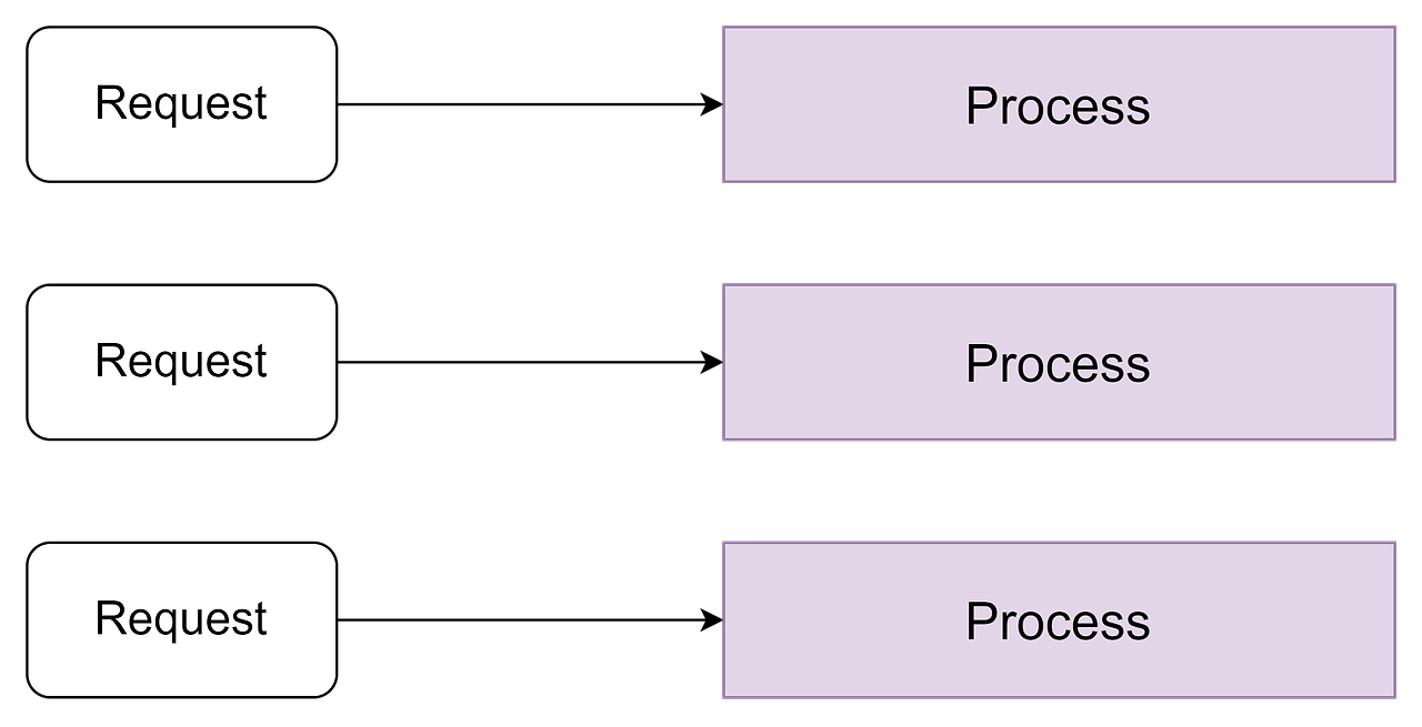 Apach는 각 요청마다 새로운 프로세스를 생성하여 요청을 처리한다. 요청마다 독립적인 메모리 공간을 사용하기 때문에 안정적이지만, 요청 수가 많아질수록 메모리에 부하가 발생한다.
