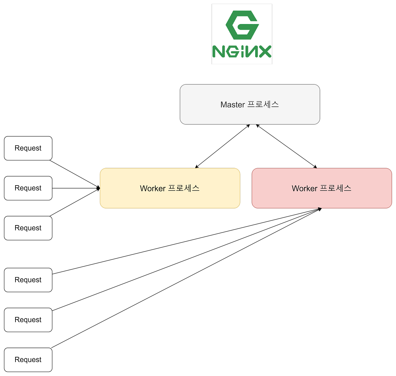 worker 프로세스는 실제로 클라이언트 요청을 처리하는 프로세스이다.