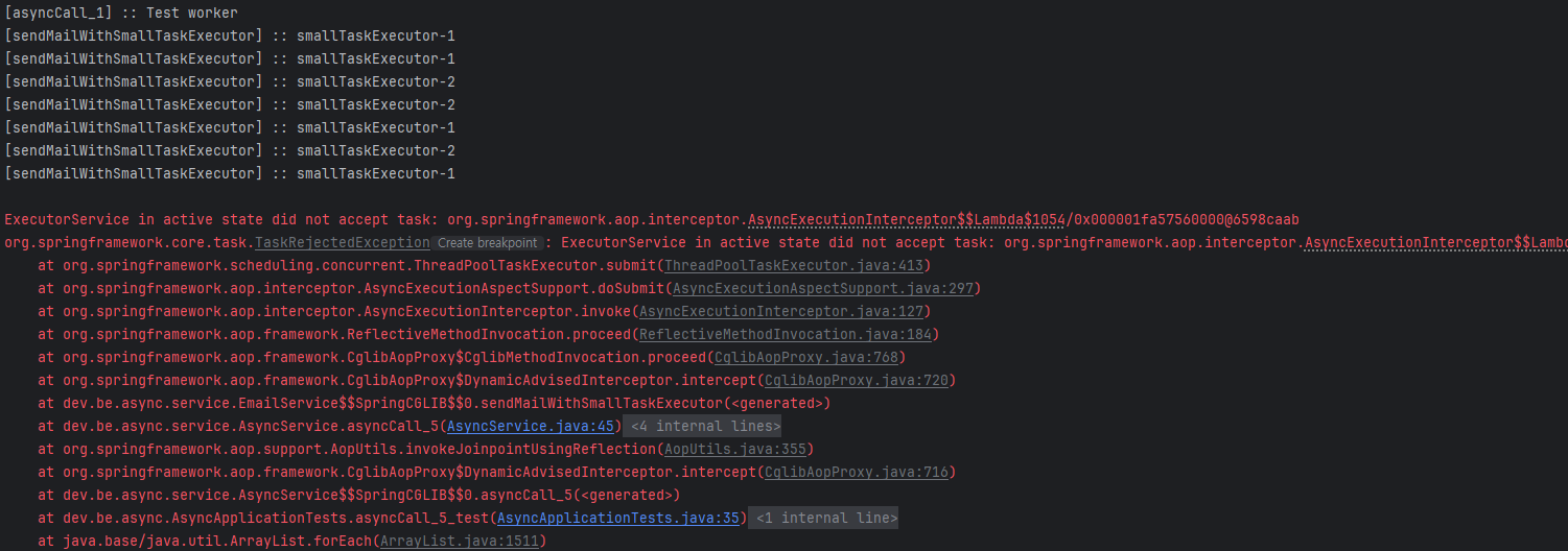 System.out.println("[sendMailWithSmallTaskExecutor] :: " + Thread.currentThread().getName());